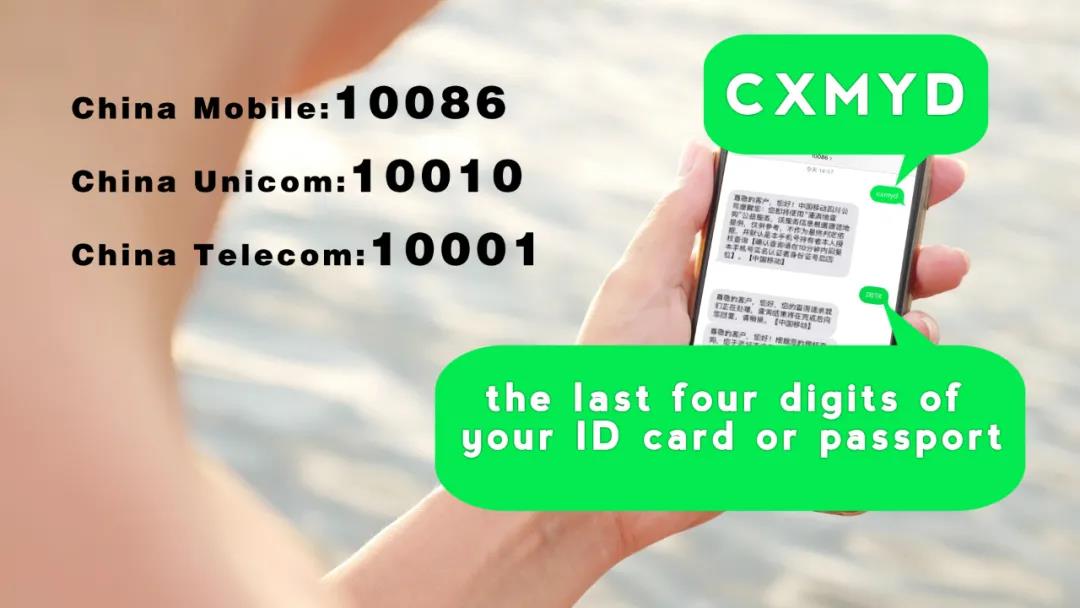 Then you will get a return message that is going to ask you to identify. You reply to this message with the last four digits of your ID card or passport. This is the one that you use in order to register your phone number. Each phone number in China is registered to one person and when you bought your SIM card you provided a passport numbers. So reply with the last four digits sore of this ID number that is affiliated with your SIM card and then your service provider is going to send you back your travel history.