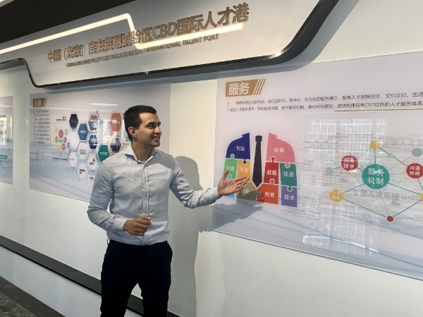 Ahmadzai Abdul Wahed, a 26-year-old entrepreneur from Afghanistan, has been in China for seven years. In March, he founded his company Wuxiangang Culture and Technology, known as NHUB, in Beijing's Chaoyang district with the help of the Overseas Talent Entrepreneurship Conference.