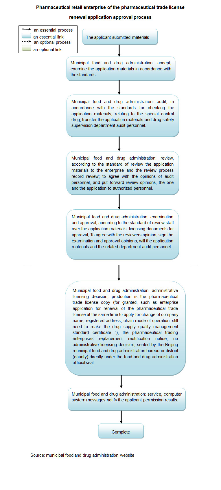Pharmaceutical retail enterprise of the pharmaceutical trade license renewal application approval process