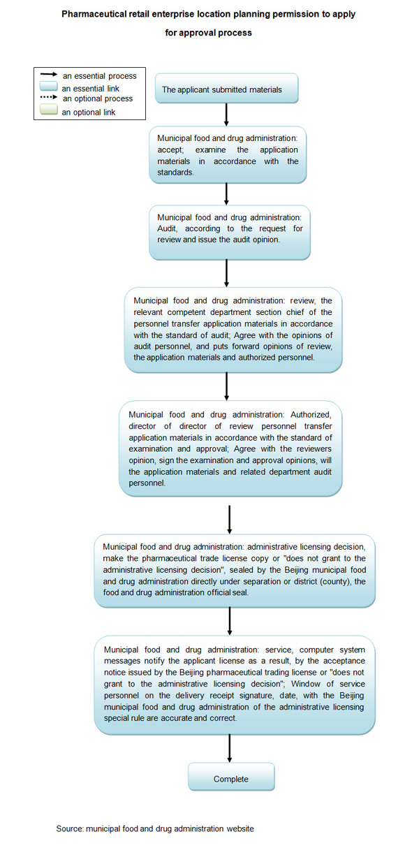 Pharmaceutical retail enterprise location planning permission to apply for approval process
