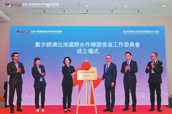 The Hong Kong work committee of the Global Digital Economy Collaboration Alliance holds an establishment ceremony at this year's Beijing Hong Kong Economic Cooperation Symposium. BEIJING BUREAU OF ECONOMY AND INFORMATION TECHNOLOGY
