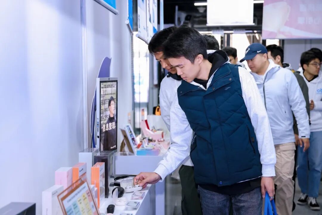 颜值即正义,佩戴零感!“一进展厅我就被它吸引了!”一位同学指着耳机说,“这个设计太精致了!我试了一下,不管怎么摇头晃脑,它都稳稳地待在耳朵上,太牢固了! ”
