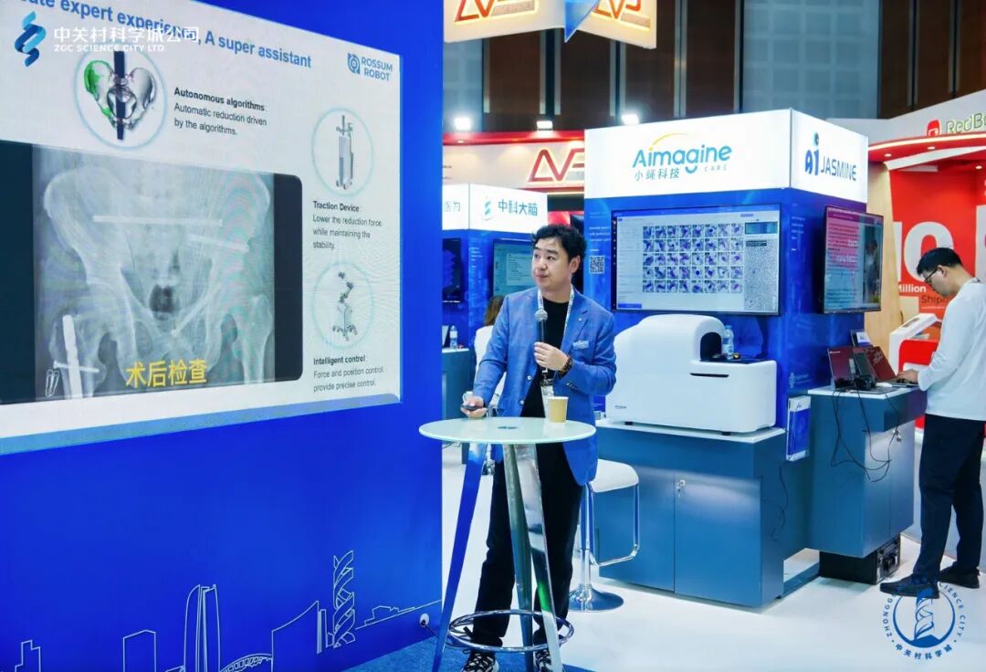 在中关村科学城展区,罗森博特的产品吸引了众多国际访客关注。其核心产品“罗森万相®”依托自主创新的自动规划算法,仅需三分钟即可生成复位路径,结合实时动态三维导航与高精度光学追踪,实现亚毫米级精准操作。该系统显著提升了手术效率与安全性,在实现创伤小、出血少、疼痛轻的同时,尤其适用于高龄脆性骨折等复杂骨盆手术,并有效降低医患双方的术中辐射暴露。