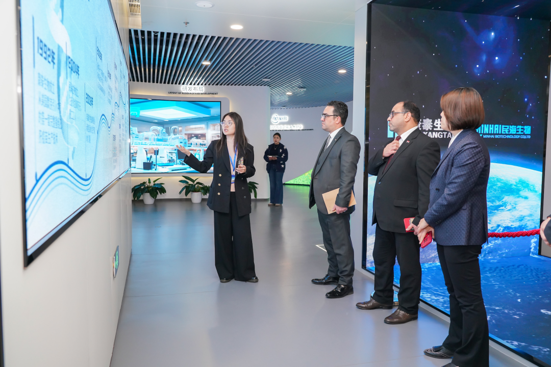 代表团一行参观民海生物展厅