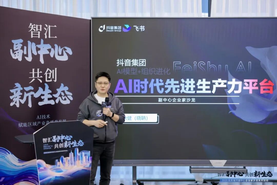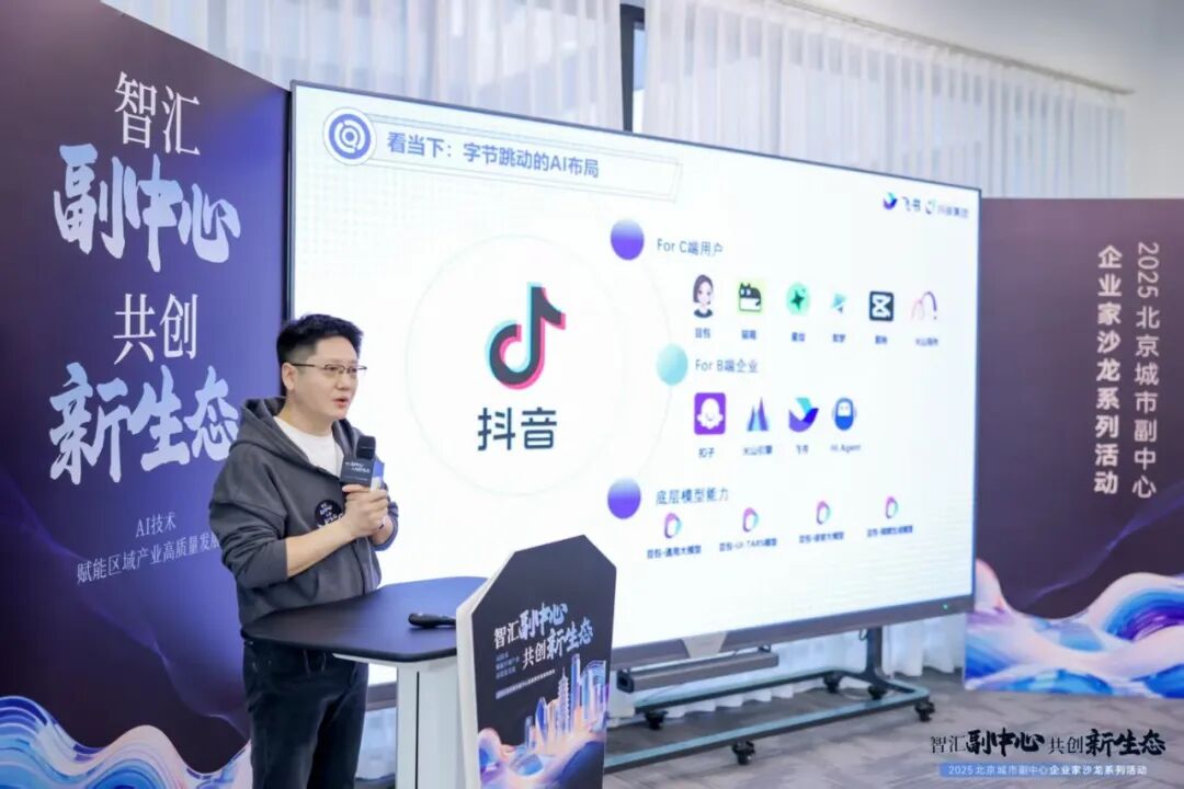 主题演讲环节聚焦AI技术与产业融合的实践前沿,带来多维度的行业洞见。兴业银行相关嘉宾以“科技金融领域的特色实践与探索”为题,深入阐述银行如何以科技为抓手,为AI及相关产业提供特色金融服务,展现科技金融赋能实体经济的强劲力量;创客贴联合创始人王金星分享“人人都会用的AI设计工具:AI设计智能体重构千亿级商业设计市场格局”,揭秘AI设计工具如何打破专业壁垒,为商业设计市场带来革新机遇;飞书商业化华北区负责人余健则围绕“AI时代企业先进生产力平台”展开演讲,为企业借助AI提升运营效率、实现数字化转型提供全新思路。