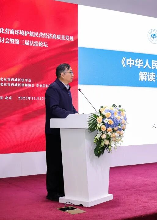 高云飞在致辞中表示,西城区始终坚持践行“法治是最好的营商环境”理念,以《中华人民共和国民营经济促进法》实施为抓手,推动法治资源向企业需求聚焦、法治服务向基层一线延伸。本次研讨搭建了政府、司法、学界、企业“四方对话”平台,希望大家集各方之智、聚各界之力,持续深化法治建设,不断推动执法司法更加精准,持续强化法学会“桥梁纽带”作用,使更多法治成果惠及民营企业,使更多民营企业家在西城能够切身感受到投资更放心、发展更安心、干事更顺心。