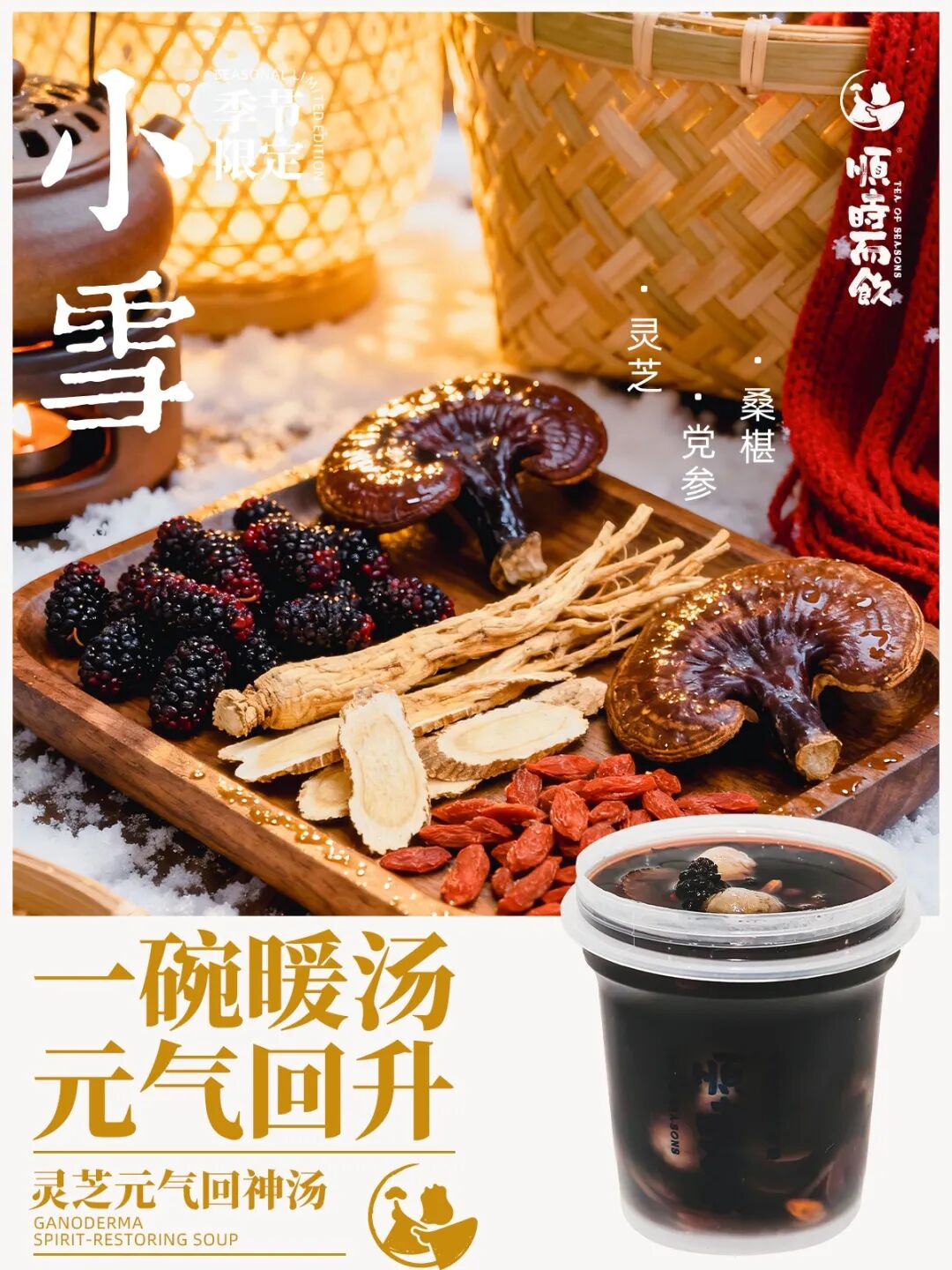 顺时而饮紧扣冬季六个节气特点,推出洋参黄芪牛乳茶、玫瑰五红暖意茶、黑芝麻暖姜红枣茶等六款时令茶饮,并在节气到来之际重点推介,让消费者在品饮间感受“顺时而食”的传统智慧。