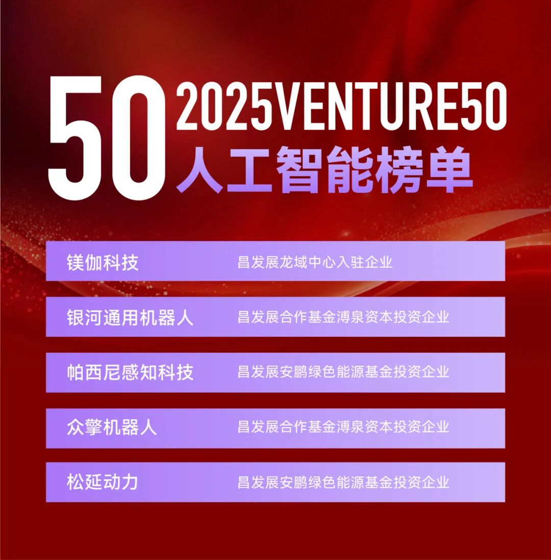 喜讯|昌发展多家生态企业入围“2025VENTURE50”榜单