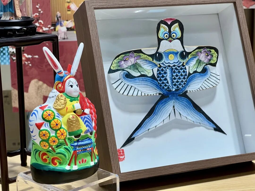 此外,金式风筝扎制技艺带来的沙燕风筝隐藏着宫廷技艺传承的密码,京派剪纸(申沛农)带来的剪纸作品充满生活气息,北京彩塑兔儿爷童趣十足,尽显老北京的精致韵味。