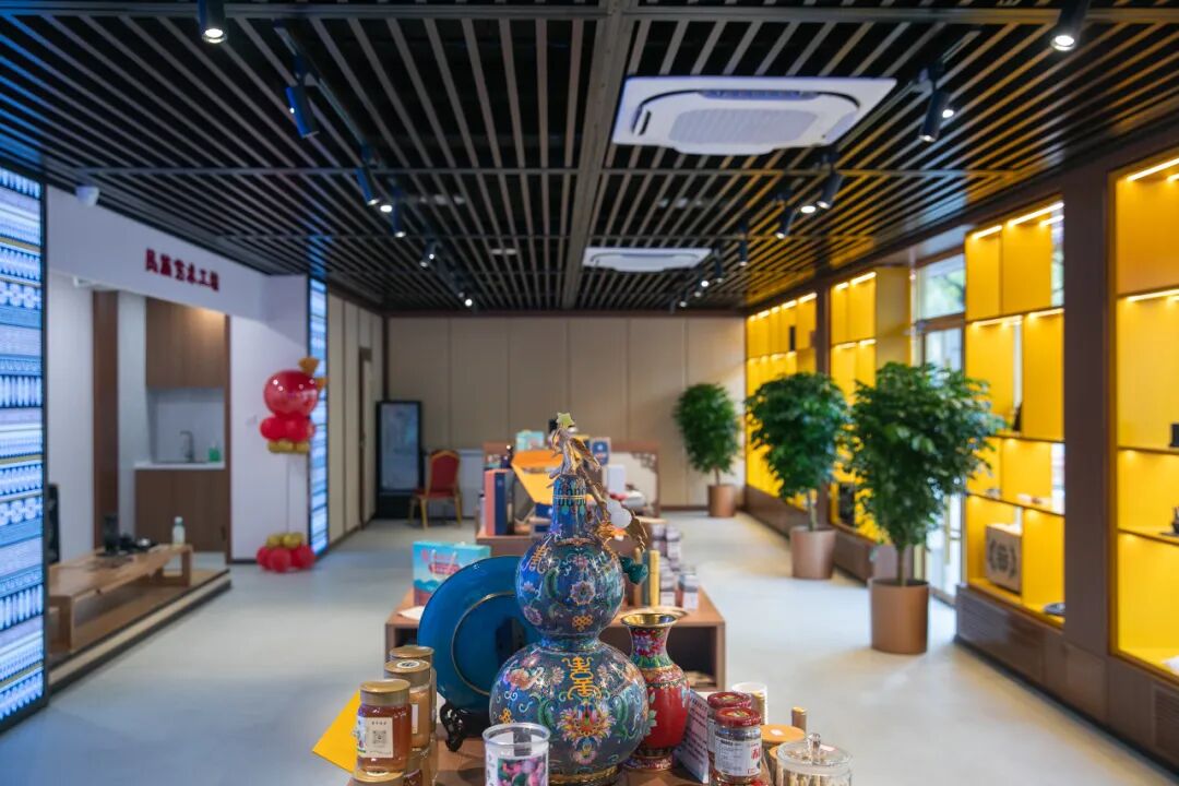 场馆采用模块化展陈系统,通过展板、展柜的自由组合,实现从成果展示、互动体验到产品展销等多功能场景的快速转换,充分满足多元化使用需求。同时,馆内专设线上直播空间,积极推动“线上+线下”协同发展,打破地域限制,有效拓展传播渠道,让民族地区的风采传播得更远。