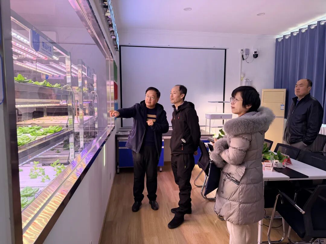 调研组一行在科技小院实地察看了智能化育苗室,详细了解模块化种植设备的多场景应用、“AI光配方”分时补光技术、太阳能光伏绿电供应系统及营养液循环利用等创新实践。领导们重点关注了小院如何通过环保材料改造、精准环境调控等手段实现“一片废叶、一滴废水不出院”,以及每日10公斤以上二氧化碳消纳的生态效益,对其成功获评“零碳植物工厂”认证、打造全国中小型设施农业零碳样板的成效给予高度评价。