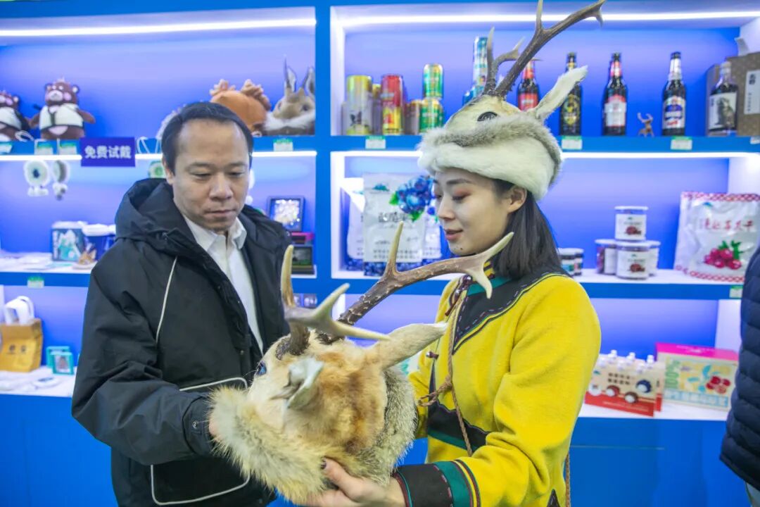 “高高的兴安岭一片大森林,森林里住着勇敢的鄂伦春……”活动在《鄂伦春小唱》欢快的旋律中拉开帷幕,粗犷有力、节奏鲜明的《森林斗熊舞》瞬间点燃现场氛围。随后,81岁高龄的鄂伦春族赞达仁国家级非遗传承人小花鹿奶奶携驯鹿亮相,以空灵悠远的歌声展现独特的民俗魅力,让观众在沉浸式体验中深切感受鄂伦春文化的深厚韵味。