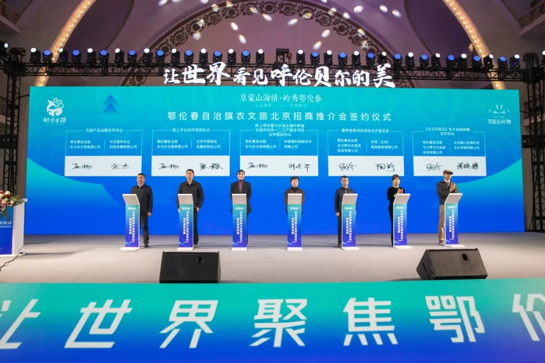 现场,鄂伦春本兴农文旅有限公司分别与西城区金融街物业公司、中联智科高新技术有限公司、中云麦林农业科技发展有限公司签订合作协议,鄂伦春乌力楞文化旅游投资有限公司分别与天恒(北京)商务旅游有限公司、北京翻江倒海影视文化传媒有限公司签订合作协议。这些签约项目涵盖农副产品销售、线上销售平台搭建、农文旅产业融合、康养旅居合作、影视文化创作等多个领域。