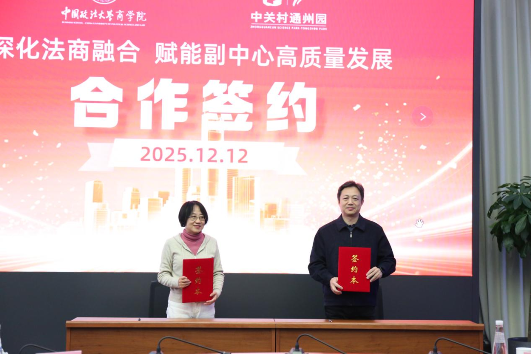 中国政法大学商学院与中关村通州园管委会合作签约暨“法商融合创新实践站”揭牌仪式成功举办