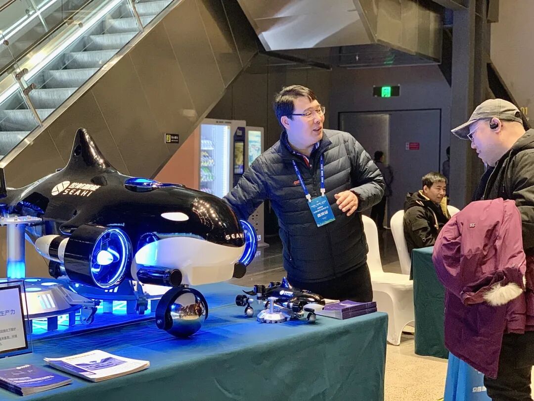 其中,丰台区企业世航智能发布的“虎鲸”海洋通用机器人样机在会场外也格外吸睛,这也是国内首台万小时寿命的水下机器人。