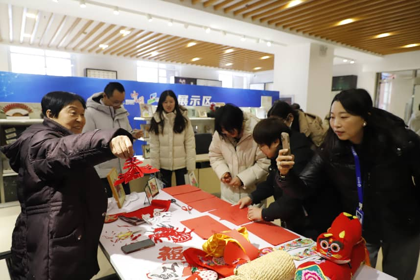 非遗传承人郝兰英现场剪纸。