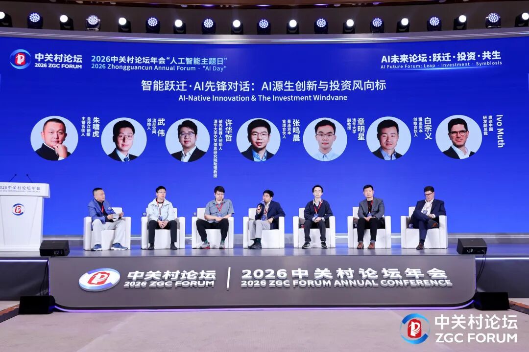 论坛的高潮出现在两场重量级圆桌对话中。在“产业重构·投资大咖对话”环节,红杉中国合伙人周逵、高瓴创始合伙人李良、经纬创投创始管理合伙人徐传陞、五源资本创始合伙人刘芹四位顶级投资人同台论道,围绕“AI新物种如何重构生产力格局”展开深度交锋。在“智能跃迁·AI先锋对话”环节,金沙江创投主管合伙人朱啸虎与星连资本管理合伙人张鸣晨、耀途资本创始合伙人白宗义、奥迪中国研发副总裁Ivo Muth、流形空间创始人兼CEO武伟、清华大学副教授章明星、破壳机器人创始人兼清华大学交叉信息研究院助理教授许华哲,从产业端、技术端、资本端三重视角,解构AI源生创新的底层逻辑与投资风向。