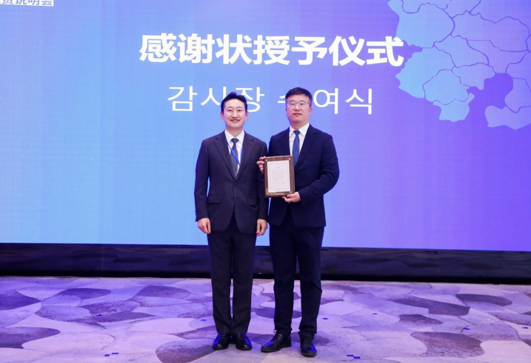 作为“海淀区全球服务合作伙伴”,氪星创服长期致力于科技服务、产业孵化与国际创新资源对接。在本次中国投资说明会中,氪星创服高效统筹中外政企、产业园区与投资机构等多方优质资源,有效搭建起中韩产业合作桥梁,其专业的组织与服务能力获得肯定,荣获庆尚北道政府颁发的感谢状。