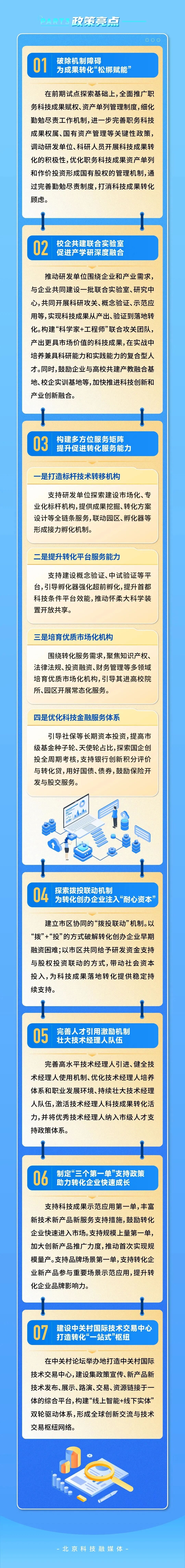 近日,北京市人民政府办公厅印发《北京市推进科技成果转化落地行动方案(2025—2027年)》,聚焦科技创新和产业发展深度融合,破解科技成果转化堵点难点。